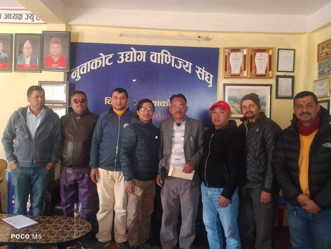प्रशासनमा क्युआर कोड गुनासो १ कार्तिक २०८१ पुरा पढ्नुहाेस् नागरिक समाज नुवाकोटको प्रथम साधारणसभा १६ आश्विन २०८१ पुरा पढ्नुहाेस् मुख्यमन्त्रीलाई स्वागत तथा बधाई १० आश्विन २०८१ पुरा पढ्नुहाेस् सामाजिक सद्भाव कायम राख्न सरकारकाे ध्यानाकर्षण ११ भाद्र २०८१ पुरा पढ्नुहाेस् गुणस्तरहिन कामको भुक्तानी रोक्न ध्यानाकर्षण १० असार २०८१ पुरा पढ्नुहाेस् महोत्सवको अनुगमनमा ३ जना मनोनीत २२ माघ २०८० पुरा पढ्नुहाेस्